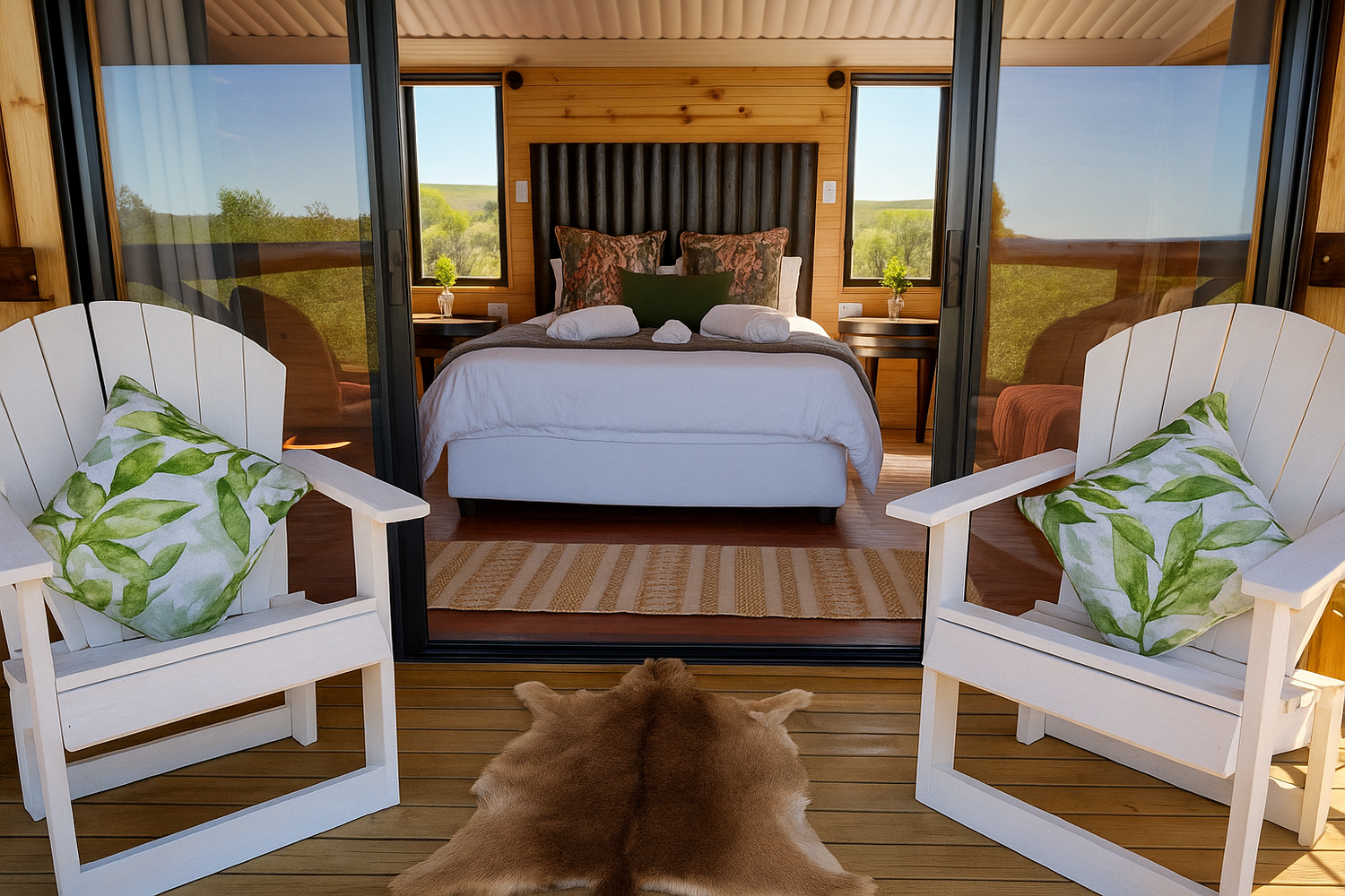 After a braai, sink into the warmth of your private wood-fired hot tub under the stars — both our cabins come equipped for the perfect night-time unwind. Or, light a big fire, kick back, and enjoy the soothing sounds of nature after dark.